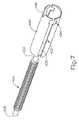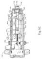 連結部(440)は、発射ロッド(730)およびピン(738)に固定され、連結部(440)は、ロッド(730)、ピン(738)、分岐部(732)、および針(110)と一体的に並進する。連結部(440)は、環状フランジ(442)およびキャップ部材(444)を含む。キャップ部材(444)は、発射管(420)の整列用ノッチ(436)を補完する整列用突出部(446)を含む。連結部(440)はまた、バネ(452)により外側へと反対側に(opposingly)突出するよう弾性的に付勢される、一対の歯止め(450)を含む。当然、さまざまな他のタイプの弾性構成要素または付勢構成要素を、コイルバネ(452)に加えて、またはその代わりに、使用することができる。キャップ部材(444)は、歯止め(450)およびバネ(452)を連結部に固定すると共に、バネ(452)が圧縮および圧縮解除(decompressed)される際に歯止め(450)を横方向に動かす。具体的には、以下でさらに詳細に説明するように、歯止め(450)は、発射管(420)が遠位に進められると発射管(420)の歯止めノッチ(434)内に嵌め込まれ、その後、発射管(420)が近位に後退するとレール(782)により内側に偏向するように、サイズ決めされ、位置付けられ、構成される。 The coupling (440) is fixed to the firing rod (730) and the pin (738), and the coupling (440) includes the rod (730), the pin (738), the bifurcation (732), and the needle (110). Translate in unison. The connecting portion (440) includes an annular flange (442) and a cap member (444). The cap member (444) includes an alignment protrusion (446) that complements the alignment notch (436) of the firing tube (420). The coupling (440) also includes a pair of pawls (450) that are resiliently biased to project outwardly by a spring (452). Of course, various other types of elastic or biasing components can be used in addition to or instead of the coil spring (452). The cap member (444) secures the pawl (450) and spring (452) to the coupling and moves the pawl (450) laterally as the spring (452) is compressed and decompressed. Specifically, as described in more detail below, the pawl (450) is fitted into the pawl notch (434) of the firing tube (420) as the firing tube (420) is advanced distally, and thereafter , Sized, positioned and configured to deflect inwardly by rail (782) as launch tube (420) retracts proximally.