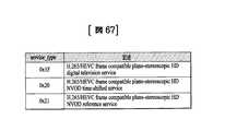 また、service_typeの値は、アドバンスドコーデック(advanced codec)を示すことができる。前記アドバンスドコーデックservice_typeは、サービスがMPEG−2ではなく、他のものを用いてエンコーディングされたことを示すことができる。より詳細には、このようなservice_typeのうちの1つの割当は、受信機は、前記サービスをデコーディングし、提示できるように、MPEG−2以外のコーデックを支援しなければならない。これに基づいて、MPEG−2 SD−only受信機は、ユーザの選択のためのservice_typeのうちの1つが割り当てられたサービスを出力できないことがある。このようなservice_typeのうちの1つの割当は、特別ではないアドバンスドコーデックの使用のためのジェネリックインディケーション(generic indication)を提供する。それは、受信機が、このようなservice_typeのうちの1つが割り当てられたサービスをデコーディングし、出力できるように決定するように許諾されない。もちろん、特定のプラットホームの場合に、特定のエンコーディングは、service_typeの1つと暗示的にリンクされ、受信機によって参照される。しかし、そのようなアレンジメントは、本明細書の範囲を逸脱する。サービスは、アドバンスドコーデックservice_typeのために割り当てられた場合、コンポーネントデスクリプタはSI内に用いられ、これは、使用された特定のアドバンスドコーデックを示すためである。これは、受信機に適切にハンドルすることができ、サービスをデコーディングし、出力するようにするか否かを混同なしに決定するように許諾する。 Also, the value of service_type can indicate an advanced codec. The advanced codec service_type may indicate that the service is encoded using something other than MPEG-2. More specifically, the assignment of one of these service_types must support a codec other than MPEG-2 so that the receiver can decode and present the service. Based on this, the MPEG-2 SD-only receiver may not be able to output a service assigned with one of the service_types for user selection. One assignment of such service_type provides a generic indication for the use of a non-advanced advanced codec. It is not licensed to determine that the receiver can decode and output a service to which one of such service_types is assigned. Of course, for a particular platform, a particular encoding is implicitly linked with one of the service_types and referenced by the receiver. However, such an arrangement deviates from the scope of this specification. When a service is assigned for the advanced codec service_type, the component descriptor is used in the SI, to indicate the specific advanced codec used. This allows the receiver to handle it properly and allows it to decide without confusion whether to decode and output the service.