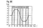 1つの可能な実施形態では、電力形態補正、PFCは、クロック化充電回路2aの第1DC/DC切り替えレギュレータで行われる。この切り替えステップは、特定の定格電力からの規範的に規定された電力形態補正を実行するように役立つ。このような電力形態補正を用いて、電力供給網からの電流の引き込みが、できるだけ正弦波的となることを確実にすることができる。図18は、完全な正弦波電流の引き込みと比較した、コンバータ入力での可能な電流の流れを示す。電力形態補正の操作のモードは、入力(操作の型CCM=連続導通モード)において測定された正弦波電圧に応じて引き込まれる電流を制御することからなる。したがって、図18に示される連続正弦波線は、理想的な状態を示す。その他、破線は、PFCを有する電流の引き込みを示し、かつ、コンバータの切り替え時間を表す(破線は、理想状態への近似値を表す)。  In one possible embodiment, the power configuration correction, PFC, is performed at the first DC / DC switching regulator of the clocked charging