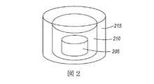 第2の例として、パルス状DDDが、製造されてもよい。図2に示されるような、パルス状薬物放出プロフィールが、本発明者等の方法を使用して複層のコア−シェル構造DDDによって達成されることが出来る。コア−シェル構造DDDにおいて、バッファ領域210が、所望の遅延放出時間を作るために、コア205とシェル215との間に形成されることが出来る。同様に、多重パルス状放出DDDもまた、DDDにおいて、薬物の豊富な隔離された層または領域を確立することによって容易に調製されることが出来る。  As a second example, a pulsed DDD may be manufactured. A pulsed drug release profile, as shown in FIG. 2, can be achieved with a multi-layer core-shell structure DDD using our method. In the core-shell structure DDD, a