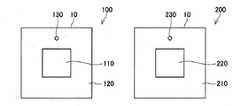 図7は、実施例3の参考例を示す。図7に示すように、この参考例では、上アーム半導体装置100において、大電流が流れる上アームダイオード120の周囲に上アームスイッチング素子110が形成されている。この参考例では、温度センサ130は、上アームダイオード120の中心部(即ち、半導体基板10の中心部)に設けられている。同様に、下アーム半導体装置200において、大電流が流れる下アームスイッチング素子210の周囲に下アームダイオード220が形成されている。温度センサ230は、下アームスイッチング素子210の中心部(即ち、半導体基板10の中心部)に設けられている。故意に、最も高温になりやすい半導体基板10の中心部に、大電流が流れる素子(上アームダイオード120、下アームスイッチング素子210)を配置することにで、温度センサ130、230による温度モニタを容易に行えるようにしている。  FIG. 7 shows a reference example of the third embodiment. As shown in FIG. 7, in this reference example, in the upper