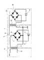 そこで、後述のように前記送電手段は、前記受電用コイルで受ける磁束の交番の位相に対して、前記送電用コイルから発生する磁束の交番の位相を合わせる同期手段を備えることが好ましい。この場合に、受電用コイルは、外部の無接点給電装置で発生する磁束を受けることになるので、受電用コイルで受ける磁束の交番の位相に合わせて送電用コイルで磁束を交番させることになる。However, in this case, the flowing alternating current needs to be synchronized between the power receiving coil side and the power transmitting coil side. That is, it is preferable that the phase of the alternating magnetic flux received on the power receiving coil side and the phase of the alternating magnetic flux generated on the power transmitting coil side (alternating magnetic field) are synchronized. If the alternating phases of these magnetic fluxes are greatly shifted or reversed, the mutual magnetic fluxes cancel each other and the charging efficiency decreases.