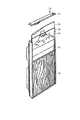また上記特許文献3の従来技術によれば、上記特許文献2の従来技術のような大きなモジュールを用いることなく意匠柄を変更することが可能であるが、上部キャップの取外しによって扉周囲のガスケットの密着性が低下するだけでなく、意匠柄変更時には上方向にのみ意匠柄が抜き差しされるため天井が低い環境では意匠柄の出し入れが難しくなると共に、高所作業となり危険であるため安全性に課題が残る。  Moreover, according to the prior art of the above-mentioned