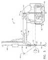 図2に見られ得るように、ロボットアームカート20は、概ね30と示される複数の手術用具を作動させるように構成される。マスターコントローラとロボットアームカートを用いた各種のロボット手術システム及び方法が、その開示内容の全体が本明細書に参照により組み込まれる、米国特許第6,132,368号、表題「Multi−Component  Telepresence  System  and  Method」に開示されている。図示されているように、ロボットアームカート20は、基部22を含み、図示の実施形態において、この基部22から、3つの手術用具30が支持されている。手術用具30は、概ねセットアップ接合部32と呼ばれる手動による関節運動が可能な一連の連結部及びロボットマニピュレータ34によってそれぞれ支持される。本明細書では、これらの構造は、ロボット連結部の大部分を覆って伸びる保護カバーと共に図示されている。これらの保護カバーは任意であり、このような装置を操作するのに使用されるサーボ機構が受ける慣性を最小化するため、可動部品の体積を制限することで衝突を防止するため、または、カート20の全体の重量を制限するために、サイズを制限するか又は完全に省略することができる。カート20は、手術室間でカート20を輸送するのに適した寸法を一般的に有する。カート20は、通常、標準的な手術室のドアを通り抜け、標準的な病院のエレベータに乗せられるように構成される。カート20は、好ましくは一定の重量を有し、カート20を1人の付添人によって手術台に隣接して位置決めできるホイール(又は他の輸送)システムを含む。  As can be seen in FIG. 2, the