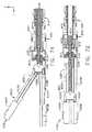 外科的な巧緻性を向上させるためだけでなく、外科医が直感的な方式で患者に手術できるようにするために、長年にわたって、様々な最小侵襲ロボット(又は「遠隔手術(telesurgical)」)システムが開発されてきた。そのようなシステムの多くは、その各全体が参照により本明細書に組み込まれる下記米国特許:米国特許第5,792,135号、表題「Articulated Surgical Instrument For Performing Minimally Invasive Surgery With Enhanced Dexterity and Sensitivity」、米国特許第6,231,565号、表題「Robotic Arm DLUS For Performing Surgical Tasks」、米国特許第6,783,524号、表題「Robotic Surgical Tool With Ultrasound Cauterizing and Cutting Instrument」、米国特許第6,364,888号、表題「Alignment of Master and Slave In a Minimally Invasive Surgical Apparatus」、米国特許第7,524,320号、表題「Mechanical Actuator Interface System For Robotic Surgical Tools」、米国特許第7,691,098号、表題「Platform Link Wrist Mechanism」、米国特許第7,806,891号、表題「Repositioning and Reorientation of Master/Slave Relationship in Minimally Invasive Telesurgery」及び米国特許第7,824,401号、表題「Surgical Tool With Writed Monopolar Electrosurgical End Effectors」に開示されている。そのようなシステムの多くはしかしながら、組織を効果的に切断及び締結するのに必要な大きさの力を発生させることが、これまではできなかった。更に、既存のロボット手術システムは、それらが操作し得る異なる種類の手術デバイスの数に限定される。 Over the years, various minimally invasive robotic (or “telesurgical”) systems have been developed to allow surgeons to operate on patients in an intuitive manner, as well as to improve surgical skill. Has been developed. Many of such systems are described in the following US patents: US Pat. No. 5,792,135, each of which is incorporated herein by reference in its entirety: Title “Artificated Surgical Instrument For Permanently Insufficient Quantitative Enhance Enhancing Excited” , U.S. Patent No. 6,231,565, entitled "Robotic Arm DLUS For Performing Surgical Tasks", U.S. Patent No. 6,783,524, entitled "Robotic Surgical Tool With Culturing Patent, U.S. Patent." US Pat. No. 6,364,888, title “Alignment of Master and Slave In a Minimal Inverse Surgical Apparatus, US Pat. , 098, title "Platform Link Wrist Machinery", U.S. Patent No. 7,806,891, title "Repositioning and Reorientation of Master / Slave Relationship in Minimal Invertive Patent" No. 7,824,401, titled “Surgical Tool With Written Monopolar Electrical End Effects”. Many such systems, however, have not previously been able to generate the amount of force necessary to effectively cut and fasten tissue. Furthermore, existing robotic surgical systems are limited to the number of different types of surgical devices that they can operate.
