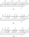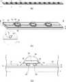図11に示すように、この例は、電線8として被覆付電線(平角線)を用いる場合の例である。被覆付電線(平角線)は、電線8として用いられる場合、例えば、その端部が折り畳まれる(図11(a))。そして、基体4には、この折り畳まれた部分が露出するように白色反射材などの絶縁膜6が設けられる(図11(b))。折り畳まれた部分(絶縁膜6から露出している部分)が発光ダイオード10の電極に接続される電線8上の電極となる(図11(c))。  As shown in FIG. 11, this example is an example in the case where a covered electric wire (flat wire) is used as the