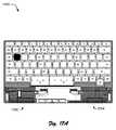 例えば、示されるように、ホーム行(例えば、キー43〜55)のそれぞれのキーについての接着剤の配置は、次の下の行のキーの列、例えばキー56〜67についての接着剤の配置とは異なる。これは、キーの中央、又はキーの4つの側面のうちの特定1つにおいて、「どこで」キーが押下されるかに対処するために行うことができる。これは、ユーザの指の爪とは対照的に指の指球を使用するように、ユーザの指が押下するキーが「どのように」押下されるかに対処するために行うことができる。こうして、図17の接着層1700の例に示されるように、異なる配置は、異なる行キーだけでなく、異なる列キーについても使用することができる。  For example, as shown, the adhesive placement for each key in the home row (eg, keys 43-55) is the adhesive placement for the key row in the next lower row, eg, keys 56-67. Is different. This can be done to address where the key is pressed in the middle of the key, or in a particular one of the four sides of the key. This can be done to deal with "how" a key pressed by the user's finger is pressed, such as using a finger ball as opposed to a user's fingernail. Thus, as shown in the example of
