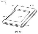 この例では、(例えば、センサ基板202の下の)層は、「フルブリード(全面に塗布された)接着シート」として構成されていないが、代わりに、連続した層を一緒に結合させる正方行列状の接着剤のパッチである。これによって、容易なアセンブリが可能になり、且つ層間に閉じ込められた空気溜まりを排除することを可能にする。このように、複数の層が、薄いプロファイル、剛性を達成するために接着剤構造を介して一緒に結合されており、コンポーネントの内部電子部品のネスト化を可能にする。 In this example, the layers (e.g., below the sensor substrate 202) are not configured as "full bleed adhesive sheets", but instead a square matrix that joins successive layers together. Adhesive patch. This allows easy assembly and eliminates air pockets trapped between the layers. In this way, multiple layers are joined together through an adhesive structure to achieve a thin profile, stiffness, allowing for the nesting of the internal electronic components of the component.