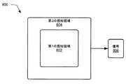 前述したように、スイッチのエッジからの距離の変化による可撓性コンタクト層502の屈曲によって、距離がキーのエッジから増加するにつれて、比較的強い信号を生成することができる。従って、この例では、第1及び第2の感知領域802,804は、異なる位置で発生した信号806を正規化するように構成されている。これは、第1の感知領域802と比較して、第2の感知領域804においてより高い導電率及びより小さい抵抗を有するようにすることによって、様々な方法で行うことができる。  As described above, bending of the