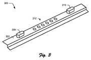 図3には、機械的な結合突起部208,210と複数の通信用接点212とを含むような、図2の接続部202の斜視図を表す実装例300が示されている。示されるように、機械的な結合突起部208,210は、接続部202の表面から離れる方向に延びるように構成されており、この場合には、垂直であるが、他の角度も企図される。  FIG. 3 shows an