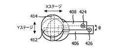 2つのリニア・ステージ(Xステージ412およびYステージ414)の位置を変更することによって、回転点に対してのツールのヨー角およびピッチ角(θおよびφ)を修正することができる。Xステージ412およびYステージ414は、手動レバー付きの親ねじ、エンコーダ・ホイール、または運動スケールを用いて手動で制御することができ、あるいはステージ412、414は、親ねじを備えたステッパまたはサーボ・モータ・システムならびにエンコーダまたはポテンショメータを用いて制御することができる(上記の図2も参照)。  By changing the position of the two linear stages (