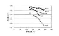 表1及び図8に示すように、NiパイプがPを含有するコンタクトプローブは、Pの含有量がEDXによる検出限界未満のコンタクトプローブと比較して、測定したすべての評価温度において縮み量が小さかった。Pを含有するコンタクトプローブは、評価温度125℃での縮み量を50μm以下にすることができた。 As shown in Table 1 and FIG. 8, the contact probe in which the Ni pipe contains P has a smaller amount of shrinkage at all measured evaluation temperatures than the contact probe in which the P content is less than the detection limit by EDX. It was. The contact probe containing P was able to reduce the amount of shrinkage at an evaluation temperature of 125 ° C. to 50 μm or less.