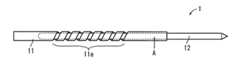 コイル状スプリング構造11aを形成した後、心材15を除去する(図3Dを参照)。心材15の除去は例えば、心材15を一方又は両方から引っ張って心材15の断面積が小さくなるように変形させ、この状態で心材15を引き抜けばよい。  After the