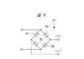 整流回路17は、図示するように、4つのダイオード31〜34からなる。ダイオード31のカソードおよびダイオード33のアノードには、図8に示すコンデンサ30とインダクタ29との接続部がそれぞれ接続されている。  The