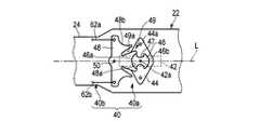 このため、伝達機構40aは、回動レバー42により入力側回動部44から出力側回動部48に回動力が伝達されるが、出力側回動部48から入力側回動部44には回動力は伝達されない。したがって、この回動機構40を用いることで、意図せず処置部26が回動してしまうのを防止できる。一方、回動レバー42を所定の回動角度を超えて回動させると、管状体24の先端に対して処置部26を設定した角度に回動させることができる。 For this reason, in the