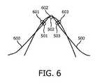 湾曲は、図6に示されるように、異なる曲線の異なる湾曲からの曲げ半径を比較することによって整合される。点501,502,503によって定義される(ステップ420から記憶された)曲線500の曲げ半径は、点601,602,603によって定義される(異なるソースからの)曲線600の曲げ半径と整合される。それらの曲げ半径が所定の誤差マージン内で一致する場合は、それらの湾曲は、一致すると決定される。点は不連続な距離で位置するので、新しい形状の曲線は、基準形状の点の間でシフトされてよい。様々な実施形態に従って、検出を改善するために、極めて小さいサンプルレートが使用されてよく、あるいは、補間がエルミート曲線又はスプラインとともに実行されてよい。The curves are matched by comparing the bend radii from different curves of the different curves, as shown in FIG. The bend radius of curve 500 (stored from step 420) defined by