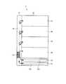 収納庫シャッタ62は、収納部35(図2参照)の各収納庫の入出金口に、それぞれ1つずつ設けられている。各収納庫の収納庫シャッタ62は、各収納庫から紙幣を搬送部36に搬出する際、および、搬送部36から各収納庫内に紙幣を搬入する際に開いて、紙幣の搬入出を可能とする。  One storage shutter 62 is provided at each deposit / withdrawal port of each storage of the storage unit 35 (see FIG. 2). The storage shutter 62 of each storage is opened when a banknote is carried out from each storage to the