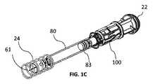 本発明のさらに別の局面によれば、上記信号発生部材の上記横断壁は、遠位に延びる突出部を備え、上記管状の延長部の遠位面は、貫通孔を備え、そのため、上記信号発生部材の上記横断壁が上記管状の延長部の上記遠位内面にぶつかり、上記遠位に延びる突出部は、上記貫通孔を通って、上記管状の延長部の上記外面上に予め定められた距離だけ遠位に延びて、触知信号を発生させる。 According to yet another aspect of the present invention, the transverse wall of the signal generating member comprises a distally extending protrusion, and the distal surface of the tubular extension comprises a through hole, so that the signal The transverse wall of the generating member hits the distal inner surface of the tubular extension, and the distally extending projection is predetermined on the outer surface of the tubular extension through the through hole. Extends distally a distance to generate a tactile signal.