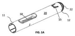 図1Aは、例示的な薬剤送達装置1のハウジング20の斜視図である。ハウジング20は、その内壁に突出部(図示せず)をさらに備えている。当該突出部は、付勢される送達部材カバー30(図1B参照)のガイド部材36を受けるように適合されている。付勢される送達部材カバー30は、少なくとも部分的にハウジング内に位置決めされ、ハウジング内で軸方向に移動可能である。例示的な実施例では、2つの突出部(図示せず)がハウジング20の内壁の各々の側に1つずつあり、対応して、付勢される送達部材カバー30の2つのガイド部材36がある。示されている実施例では、ハウジング20は、ハウジング20内に同軸に配置され取付けられた、薬剤容器80(図1C参照)を格納するための容器ホルダ50をさらに備えている。容器ホルダ50は、ハウジングに固定的に接続可能であるか、または、ハウジングに対して軸方向に移動可能であるかのいずれかであり得る。  FIG. 1A is a perspective view of a