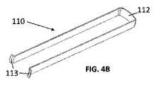 図4A〜図4Cは、本発明の例示的な実施例に係る信号発生部材110の側面図および斜視図をそれぞれ示す。示されている実施例では、信号発生部材110は、細長いU字型のブラケットであり、管状の延長部22内に配置されたときに薬剤送達装置の近位方向に向けられる少なくとも2つの細長いアーム111と、管状の延長部22内に配置されたときに薬剤送達装置の遠位方向に向けられる下方部分、すなわち遠位横断端壁112とを備えている。信号発生部材110は、金属、プラスチック、またはこれらの材料の任意の組合わせでできていてもよい。  4A to 4C show a side view and a perspective view, respectively, of the