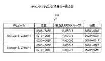 本実施例では、ボリューム識別情報は、ストレージ装置の番号及びボリュームの番号により表されている。例えば、図2のストレージ装置21を1番、ストレージ装置22を2番とすると、「Storage=1,VolNo=1」は、ストレージ装置21のボリューム番号が1番のボリューム232を表している。  In this embodiment, the volume identification information is represented by a storage device number and a volume number. For example, if the