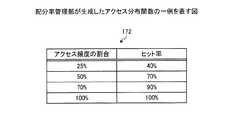 ここで、アクセス分布関数として、アクセス頻度の全体に対する割合を降順に並べた値に対応させてヒット率を表す関数が考えられる。以下では、アクセス頻度の全体に対する割合を降順に並べた値を、「アクセス頻度の割合」という。すなわち、アクセス頻度関数は、アクセス頻度の割合がx%であれば、ヒット率はy%であると求まる関数である。 Here, as the access distribution function, a function that represents the hit rate by associating the ratio of the access frequency with respect to the entire frequency in descending order can be considered. Hereinafter, a value in which the ratio of the access frequency to the whole is arranged in descending order is referred to as “access frequency ratio”. In other words, the access frequency function is a function that can be obtained when the access frequency ratio is x%, and the hit rate is y%.