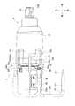 バッテリ保持ハウジング43は、その上部の開口部内に左グリップハウジング38a及び右グリップハウジング38bの下端部を受け入れた状態で、グリップハウジング38に2個のネジによって取り付けられる。
