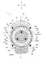 1個の遊星歯車88の中心に対して、1本の前後方向の軸90が通されている。各軸90は、スピンドル14の円盤状部82内(円盤状部82の前壁と後壁の間)において渡されており、その周りの遊星歯車88を回転可能に支えている。即ち、円盤状部82を有するスピンドル14は、軸90,90・・を介して遊星歯車88,88・・を保持している。