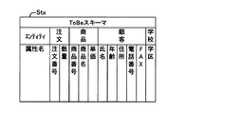 準直交化されたスキーマに基づいて顧客の住所を変更する場合、教材販売システムは、エンティティ「顧客」の属性名「住所」の実データのみを更新すればよく、更新ミスが生じ難い。図3のToBeスキーマSt1のデータ体系によると、属性名が複数のエンティティ間で重複しないため、運用や保守が容易である。 When changing the customer's address based on the quasi-orthogonalized schema, the teaching material sales system only needs to update the actual data of the attribute name “address” of the entity “customer”, and an update mistake is unlikely to occur. According to the data system of the ToBe schema St1 of FIG. 3, since the attribute names do not overlap among a plurality of entities, operation and maintenance are easy.