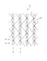 この状態においては、各独立鎖編のウェール(30)は、それぞれが連結しておらず、編地を構成しない。そこで、セルロース系繊維からなる経糸群(1)が各独立鎖編のウェール(30)を形成すると共に、セルロース系繊維からなる緯糸(2)がウェール(30)の各ループ(20)と他のウェールの他のループ(20)とを連結するようにして経編ネットを編成する。 In this state, the wales (30) of each independent chain knitting are not connected to each other and do not constitute a knitted fabric. Therefore, the warp group (1) made of cellulosic fibers forms the individual chain knit wales (30), and the weft yarn (2) made of cellulosic fibers is made up of each loop (20) of the wale (30) and the other The warp knitting net is knitted so as to connect the other loop (20) of the wale.