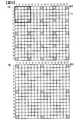 図9(A)および(B)を用いて、分割領域R2における座標対応点403の間引き方法の一例を説明する。図9(A)には、撮像画像70の画素が17x17個示されており、画素(1,1)から4画素間隔で仮設定された座標対応点403の画素にハッチングがかけられている。分割領域R2では、座標対応点403の間隔を仮設定時の2倍、たとえば8画素間隔にするため、図9(B)に例示するように、Xr座標またはYr座標が5の座標対応点403と、13の座標対応点403を間引く。各座標対応点403が間引きの対象となるか否かは、たとえば、Xr座標およびYr座標を仮設定時の2倍の間隔の値で割った剰余で判別することができる。図9(A)および(B)の例では、Xr座標を8で割った剰余またはYr座標を8で割った剰余のいずれか少なくとも一方が5となる座標対応点403が間引きの対象となる。剰余を用いた間引き対象の判定動作は、テクスチャT(i)ごとに行われる。たとえば、座標対応点403の画素(1,1)、画素(1,5)、画素(5,1)、画素(5,5)で構成されるテクスチャT1が分割領域R2に含まれると判定された場合、剰余により画素(1,5)、画素(5,1)、画素(5,5)が間引きの対象として判定される。  With reference to FIGS. 9A and 9B, an example of the thinning-out method of the coordinate