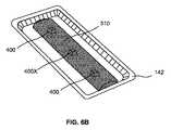 図6A〜図6Cは、本発明の実施形態に係わる、複数のマイクロLEDデバイスの上に、単一の細長い波長変換層が形成されている、サブピクセルの反射バンク層内部に実装されたマイクロLEDデバイスの配置構成の等角図を示す。図6A〜図6CでのマイクロLEDデバイスの配置構成は、図3A〜図3Cに示される例示的配置構成と同じであるが、単一の細長い波長変換層310が、サブピクセル内部又は反射バンク層142内部の、全てのマイクロLEDデバイス400の上に形成されるという相違点がある。図6B、図6Cに示されるように、細長い波長変換層130はまた、欠陥若しくは汚染されたマイクロLEDデバイス400Xの上、又は欠落したマイクロLEDデバイスに対応する接合層140の上にも形成することができる。  FIGS. 6A-6C illustrate a micro LED mounted within a reflective bank layer of a sub-pixel having a single elongated wavelength converting layer formed on a plurality of micro LED devices according to an embodiment of the present invention. Figure 3 shows an isometric view of the device configuration. The arrangement of the micro LED devices in FIGS. 6A-6C is the same as the exemplary arrangement shown in FIGS. 3A-3C, except that a single elongate