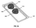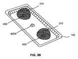ここで図3A〜図3Cを参照すると、本発明の実施形態に係わる、個別のマイクロLEDデバイスの上に、別個の波長変換層が形成されている、サブピクセルの反射バンク層内部に実装されたマイクロLEDデバイスの配置構成の等角図が示される。図3Aに示されるように、一対のマイクロLEDデバイスのうちの個別のマイクロLEDデバイス400のそれぞれの上に、別個の波長変換層310が形成される。図3Bに示されるように、修復マイクロLEDデバイス400が、反射バンク層142に転写されており、一対のLEDデバイスのうちの個別のマイクロLEDデバイス400のそれぞれの上に、別個の波長変換層310が形成される。この構成では、波長変換層310は、欠陥又は汚染されたマイクロLEDデバイス400Xの上には形成されていない。図3Cは、図3Bと同様のものであるが、ただし、欠落したマイクロLEDデバイスに対応する接合層140の上には、波長変換層が形成されない。  Referring now to FIGS. 3A-3C, implemented within a reflective bank layer of a subpixel, where a separate wavelength conversion layer is formed on an individual micro LED device, according to embodiments of the present invention. An isometric view of the arrangement of the micro LED devices is shown. As shown in FIG. 3A, a separate