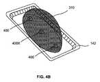 図4A〜図4Cは、本発明の実施形態に係わる、複数のマイクロLEDデバイスの上に、単一の波長変換層が形成されている、サブピクセルの反射バンク層内部に実装されたマイクロLEDデバイスの配置構成の等角図を示す。図4A〜図4CでのマイクロLEDデバイスの配置構成は、図3A〜図3Cに示される例示的配置構成と同じであるが、単一の波長変換層310が、サブピクセル内部又は反射バンク層142内部の、全てのマイクロLEDデバイス400の上に形成されるという相違点がある。図4B、図4Cに示されるように、波長変換層130はまた、欠陥若しくは汚染されたマイクロLEDデバイス400Xの上、又は欠落したマイクロLEDデバイスに対応する接合層140の上にも形成することができる。  4A-4C illustrate a micro LED device mounted within a reflective bank layer of a subpixel in which a single wavelength conversion layer is formed over a plurality of micro LED devices according to an embodiment of the present invention. An isometric view of the arrangement of The arrangement of the micro LED devices in FIGS. 4A-4C is the same as the exemplary arrangement shown in FIGS. 3A-3C, except that a single