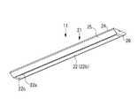 また、本体基部23の長手方向の一端には、連結部材95が設けられている。連結部材95は、複数の照明器具11を照明器具11の長手方向に並べて配置する際に、隣接する照明器具11間を連結するための部材である。  A connecting