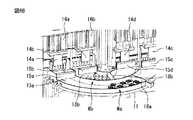 図4において梁22の他側には、第一供給経路13a〜第四供給経路13dがガイド部によってテーブル11の載置面に示されている。これら第一供給経路13a〜第四供給経路13dは、第一格納部12a〜第四格納部12dのそれぞれに連通している。  In FIG. 4, on the other side of the