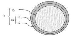 図1に示すように、本排泄物処理材1の実施形態の一例は、粒状芯部10と、この粒状芯部10の表層を被覆する所定厚さの被覆層部15とから形成される複層構造を有している。[Excrement treatment material]