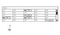 以上のように、レジスタの値がHMI(Human−Machine  Interface)を模した何らかの図柄により表示されている場合には、書換入力は、レジスタ値表示領域103の少なくとも一部を選択することにより受け付けられる。かかる受け付けは、図3に示した第2の書換入力受付部14によりなされる。  As described above, when the value of the register is displayed with some pattern simulating HMI (Human-Machine Interface), the rewrite input is accepted by selecting at least a part of the register