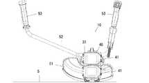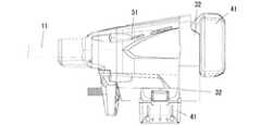 図10に示した変形例1では、後端ハウジング31には取付部32にバッテリパック41,41の周囲を覆うバッテリパック収容部34を設けた。バッテリパック収容部34はバッテリパック41,41に汚れが付着するのを防ぐためのものである。バッテリパック収容部34の一側面にはバッテリパック41の差込口34aが形成されており、差込口34aからバッテリパック41を挿入可能となっている。バッテリパック41を差込口34aから取付部32のガイドレール32b,32bに沿って奥まで摺動させると、フック46が取付部32の係止部32cに係止され、バッテリパック41が取付部32に取り付けられる。(Modification 1)