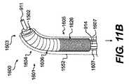 さらに、またはもしくは、1つまたはそれ以上の部分1505は、細長部材1501の受動的偏向を提供するように構成された材料を含むことができる。たとえば、1つまたはそれ以上の部分1505は、補強シース1506の代わりに、あるいは補強シース1506に加えて、外側スリーブ1552に覆われ、補強シース1506と類似の材料のコイル構造から成る偏向シースを含むことができる。しかしながら、偏向シースのコイル材料はレーザ切断パターンなどの適切な切断パターンを含むことができる。他の実施形態では、偏向シースは、たとえば低硬度Pebaxで形成されるより硬度の低いポリマーシースを含むことができる。  Additionally or alternatively, one or