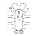 図6および6Aを参照すると、移送アーム214は、双対称フロッグレッグ移送アームとして図示されている。フロッグレッグ移送アームは、駆動アームリンク651、652および駆動アームリンク661〜664を含み得る。駆動アームリンク661、664は、エンドエフェクタEE4を駆動アームリンク651、652に接続する。駆動アームリンク662、663は、エンドエフェクタEE5を駆動アームリンク651、652に接続する。駆動アームリンク651は、任意の適切な様態でシャフト270(図2B)に連結でき、駆動アームリンク652は、任意の適切な様態でシャフト271(図2B)に連結できるので、2つの駆動シャフトの反対方向への回転により、参照により開示内容の全体が本明細書に組み込まれている米国特許第5,899,658号および米国特許第5,720,590号に記載のものと実質的に同様の様態で、エンドエフェクタEE4は、例えば、処理ステーション140Cへ/処理ステーション140Cから、延伸および後退し、エンドエフェクタEE5は、例えば、処理ステーション140Gへ/処理ステーション140Gから、延伸および後退する。シャフト270、271の同方向への回転により、フロッグレッグ移送アームのショルダ軸SX周りでの回転が引き起こされるので、駆動シャフトを反対方向へとさらに回転させることにより、米国特許第5,899,658号および米国特許第5,720,590号に記載のものと実質的に同様の様態で、例えば処理ステーション140Cへ/処理ステーション140CからのエンドエフェクタEE5の延伸および回転、例えば処理ステーション140Gへ/処理ステーション140Gからの、エンドエフェクタEE4の延伸および後退が引き起こされることに留意する。理解されるように、基板の高速な入れ替えは、一方のエンドエフェクタを処理ステーションの1つの中へ挿入し、ショルダ軸SX周りで移送アームを回転させ、その後、他方のエンドエフェクタを同一の処理ステーション内に挿入することによってもなされ得る。  6 and 6A,