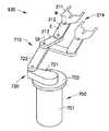 次に図7Aおよび7Bを参照すると、移送ロボット630は、一般に、ハウジング701を有する駆動セクション700と、大気フロントエンド101または真空バックエンド103の一方に移送ロボット630に取り付ける取り付けフランジ702と、移送アームセクション710とを含んでいる。移送アームセクション710は、ベースアームまたは連接ブーム720と、ショルダ軸SXでベースアーム720に回転可能に取り付けられる移送アーム214とを含み得る。ベースアーム720は、アッパーアームリンク721と、アッパーアームリンク721に回転可能に連結されたフォアアームリンク722とを含み得る。一態様において、ベースアーム720は、上述のものと実質的に同様の様態で、アッパーアームリンク721またはフォアアームリンク722の一方に取り付けられるアライナ230(図2C)を含み得る。移送アーム214は、上述のものと実質的に同様のものでもよく、ベースアーム720のフォアアームリンク722に回転可能に連結され得ることに留意する。また、移送アームは、本明細書においては一般に、異なる移送アームの構成を有するものとして様々な図面に示される、移送アーム214と呼ばれることにも留意する。例えば、図7Aにおいて移送アーム214は、アッパーアームリンク213と、アッパーアームリンク213に回転可能に連結されるフォアアームリンク212と、フォアアームリンク212に回転可能に連結されるエンドエフェクタ211とを有するSCARA型のアームとして図示されているが、上述のように、移送アーム214は、2自由度を有し、1つまたは2つ以上のエンドエフェクタを有する、任意の適切な種類の移送アームであってもよい。  7A and 7B, the