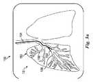 図3aは、可撓性の器具120等、可撓性の器具の器具の画像154に位置合わせされた、肺の外からの視点からのヒトの肺152の画像151を含む合成画像150を描いている。肺152の画像151は、手術前に記録された画像から生成されてもよく、又は、外科手術手技の間に同時に生成されてもよい。合成画像150は、表示システム111を介して表示されてもよい。器具120が、肺152の気管支通路156を通って進められるに従い、追跡システム135及び/又は可視化システム110からの情報が使用され、肺の画像151に器具の画像154を位置合わせする。肺152の画像151は、例えば、吸気又は呼気の状態の肺を描くために変わってもよい。器具の画像154は、気管支通路156を通った器具120の前進又は後退を描くために変わってもよい。時折、合成画像150は、器具の画像の一部154´が気管支通路の外側にあるように、器具の画像154を誤ってレンダリングしてもよい。器具が気管支通路内に置かれるように器具の画像を正すためのシステム及び方法が以下に記載される。  FIG. 3a depicts a
