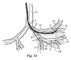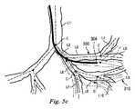 図5b乃至5dは、枝分かれした気管支通路の変形されていないモデル300を描いており、さらに、カテーテル302が通路を通って進められるのに従った、枝分かれした気管支通路の変形モデル310も示している。図5bにおいて、カテーテル302は、リンクL1を通って且つリンクL2内に進められている。変形モデル310は、変形されていないモデル300からわずかにシフトされて、リンクL1、L2に対するカテーテル302の直接力、及び、連結した遠位のリンクL3乃至L10に対する間接力に合わせて調整されている。先端304は、変形されていないモデル300でも、変形されたモデル310でも、リンクL2内にあるとして描かれているが、リンクL2内の先端304の正確な位置は、2つのモデル間で異なっている。図5cにおいて、カテーテル302は、リンクL2を通って且つリンクL3内に進められている。変形モデル310は、変形されていないモデル300からさらにシフトされて、リンクL1、L2、L3に対するカテーテル302の直接力、及び、連結した遠位のリンクL4乃至L10に対する間接力に合わせて調整されている。先端304は、変形されていないモデル300においてはリンクL3の外側にあるとして描かれているが、変形されたモデル310においてはリンクL3内にあるとして描かれている。このように、変形されたモデル310は、先端304が気管支通路の内側にあるという現実をより正確に反映している。図5dにおいて、カテーテル302は、リンクL4内に進められている。変形モデル310は、変形されていないモデル300からさらにシフトされて、リンクL1、L2、L3、L4に対するカテーテル302の直接力、及び、連結した遠位のリンクL5乃至L10に対する間接力に合わせて調整されている。先端304は、変形されていないモデル300においてリンクL5内に描かれており、さらに、変形されたモデル310においてリンクL4の内側に描かれている。このように、変形されたモデル310は、先端304の実際の位置をより正確に反映している。最終的な変形されたモデル310が、図6において描かれている。  FIGS. 5b-5d depict an