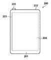 図2は、携帯型通信端末装置200の外観を示す図である。本実施形態では、スマートフォンを例にしている。スマートフォンとは、携帯電話の機能の他に、カメラや、ウェブブラウザ、電子メール機能等を搭載した多機能型の携帯電話のことである。近接無線通信部であるNFCユニット201は、NFCを用いて通信を行うユニットであり、NFCユニット201を相手先のNFCユニットに所定距離(例えば、10cm程度)以内に近づけることでNFCによる通信を行うことができる。  FIG. 2 is a diagram illustrating an appearance of the portable
