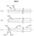 次に、図9(c)の形状に対し、さらに、切断機(例えばレーザ加工機)で切断加工903を行うことで図5(a)に示した本発明のCTSノズル22を製作することができる。ここでは1点目の特徴を考慮した加工が必要となる。つまり、この切断加工903では、先端側テーパ部504より根元側を切削端部とし、他方の切削端部は先端側テーパ部の傾斜面の途中に設ける。切削加工902と切断加工903の加工角度によってノズル先端506の位置(510と511)やノズル先端506の刃角を決定できる。以上のような工程においては、CTSノズル22の形状を製造する上で加工が単純であるためばらつきが少なく、さらに低コストで製造が可能である。なお、根元ストレート部501を別部材として溶接することも可能であるがこのように単一部材から切り出して製造することが望ましい。  Next, the