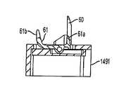 。キャップ・ストリッパは、第1方向に沿ってキャリッジと共に移動するのに加え、第1方向に交わる第2方向に移動するように配置されることが可能である。例えば、キャリッジは、透析液ライン上のキャップをカセットのスパイク上のキャップと係合させるように第1方向にAPDサイクラのカセットに向かって移動することが可能である。キャップ・ストリッパは、キャップと係合し(例えば、キャリッジの動作に交わる方向に移動することによって)、次に、キャリッジがスパイクからキャップを取り外すためにカセットから離れる際にキャリッジと共に移動することが可能である。次に、キャリッジは、キャップ・ストリッパ上のキャップから透析液ラインのコネクタ端部を引っ張ることが可能であり、それは、この時点で露出している透析液ラインのコネクタ端部を、カセット上の露出したスパイクに係合させることを可能にするように、キャリッジを後退させることが可能である。In another aspect of the present invention, a medical infusion fluid delivery system, such as an APD system, has one or more lines (such as dialysate lines) with one or more spikes or other connection ports on the fluid delivery cassette. The cap can be removed and arranged to connect these lines. This feature can provide advantages such as reduced likelihood of contamination since human interaction is not required for cap removal and line-to-spike connections. For example, the APD system can include a carriage arranged to receive a plurality of dialysate lines each having a connector end and a cap. The carriage can be arranged to move along the first direction so as to move the connector end of the dialysate line along the first direction, and the cap stripper is connected to the carriage dialysate line. It can be arranged to engage the top cap. In addition to moving with the carriage along the first direction, the cap stripper can be arranged to move in a second direction that intersects the first direction. For example, the carriage can move toward the APD cycler cassette in a first direction to engage the cap on the dialysate line with the cap on the cassette spike. The cap stripper can engage the cap (eg, by moving in a direction that intersects the movement of the carriage) and then move with the carriage as the carriage leaves the cassette to remove the cap from the spike. It is. The carriage can then pull the connector end of the dialysate line from the cap on the cap stripper, which causes the connector end of the dialysate line exposed at this point to be exposed on the cassette. The carriage can be retracted to allow engagement with the spike.