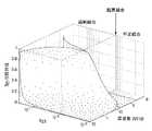 図2aは、k23の異なる値に対応する三つの領域に分割された前記プロットを示している。図2aにおいてV型の隆起を囲む点線として表される過剰結合領域では、k23>kCriticalである。(定数kCriticalの値は、図においてプロットされている表面の特徴に関して以下で定義する。)この体積の境界となる平面である臨界結合領域では、k23=kCriticalである。点線によって輪郭付けられるこの体積を超えた不足結合領域では、k23<kCriticalである。Figure 2a shows the plot is divided into three regions corresponding to different values of k23. In the over-coupled region represented as a dotted line surrounding the V-shaped ridge in FIG. 2a, k23 > kCritical . (The value of the constant kCritical is defined below with respect to the features of the surface plotted in the figure.) In the critical coupling region, which is the plane that bounds this volume, k23 = kCritical . In the under-coupled region beyond this volume outlined by the dotted line, k23 <kCritical .