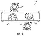 ここで、図17を参照すると、端部キャップ400はさらに、1つまたはそれを上回る骨ねじ470の受容のために構成される1つまたはそれを上回るねじ開口460を備えることができる。骨ねじは、例証されるように、端部キャップを通して上方または下方へ、かつ隣接椎骨の中に駆動するように角度付けされることができる。骨ねじは、同様に、当技術分野で既知である保持機構を備えることができる。  Referring now to FIG. 17, the