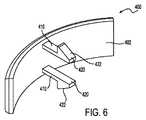 一側面では、端部キャップ400は、端部キャップの前面402の一部から離れるように突出する少なくとも1つのタブ410を備える。別の側面では、タブは、実質的に、定位置に端部キャップを保持するために、第1のプレート100および/または第2のプレート200の一部に係合するように構成されることができる。一側面では、タブは、カム表面422を伴うヘッド420を有する。この側面では、内部空洞12の中へのタブの挿入に応じて、カム表面は、第1のプレート100の下側表面115から離れるようにタブ410の一部にカム作用し、タブのヘッド420が第1のプレートの移植片窓120の縁部および/または第2のプレートの移植片窓220の縁部に到達するまで、第1のプレートおよび第2のプレートの長手軸に沿って端部キャップの双方向移動を可能にする。移植片窓の縁部に到達するタブ410に応じて、ヘッド420は、実質的に、その元の位置に後退して付勢し、移植片窓の縁部に係合し、それによって、第1のプレートおよび第2のプレートの後端部102および202に対する位置に端部キャップ400を保持する。タブ410が、第2のプレート200の一部に係合するように構成され得るか、または、少なくとも1つのタブが第1のプレート100に係合するように構成され得、かつ少なくとも1つのタブが第2のプレートに係合するように構成され得る、少なくとも2つのタブが存在し得ることが想定される。また、それぞれの第1のプレートまたは第2のプレートが、陥凹を画定し、その構成の代わりに、タブ410のヘッド420を保持し得、それによって、タブのヘッドが移植片窓の縁部に係合することが想定される。  In one aspect, the